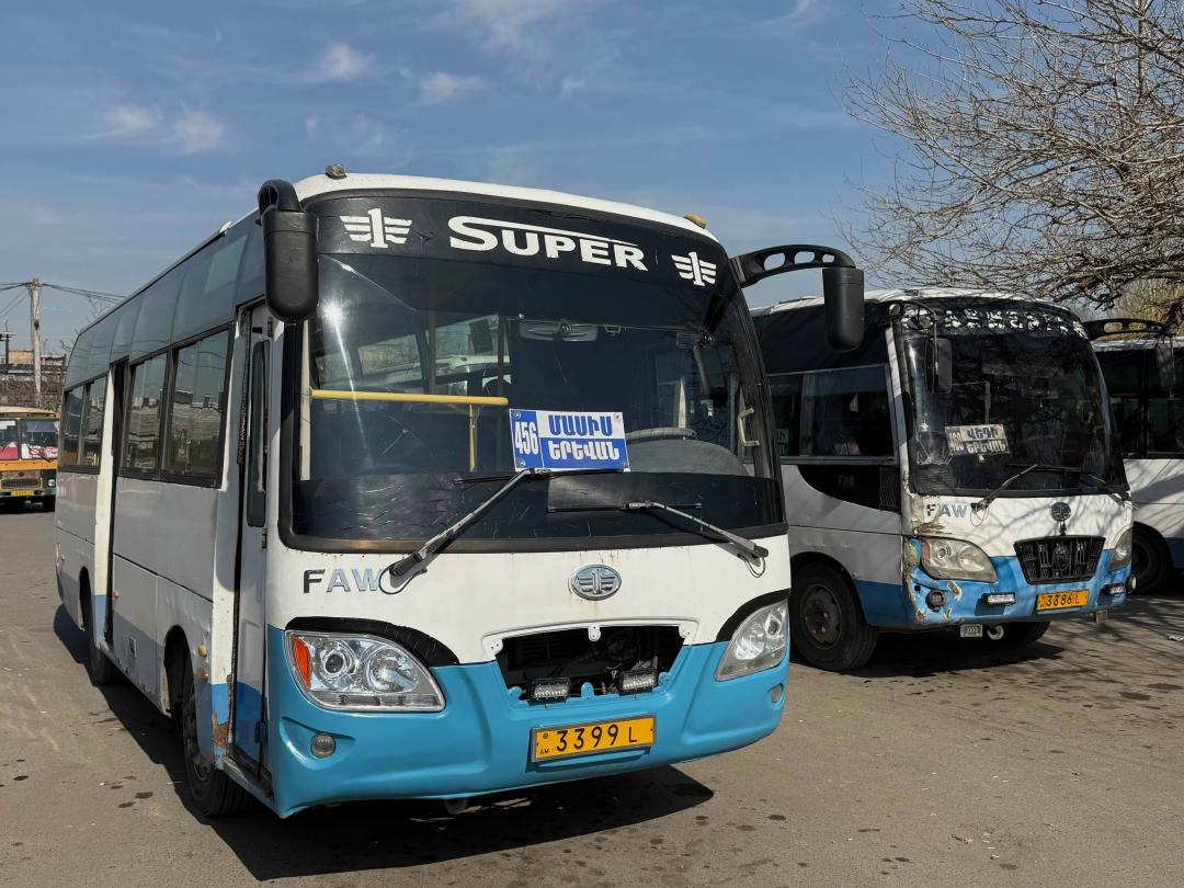 Thus, one of the Chinese buses departs for Masis, 14 km from the capital, Yerevan, where about 15,000 Karabakh Armenians live (the total population is 25,000). The bus is always full. Those who have a seat are scrolling on their phones. Those who are standing hold on to the yellow bars. They look out the dirty windows. One of the passengers standing is a heavy-set elderly man with a mustache. He is wheezing. It is noticeable how difficult it is for him to stand. “Come, sit down,” a teenage girl says in Karabakh dialect, giving up her seat. The presence of many Karabakh Armenians on the bus gives them a sense of security and allows them to speak their own dialect freely. In Armenia, they are usually uncomfortable speaking their dialect. After incidents of bullying, they have become more cautious.